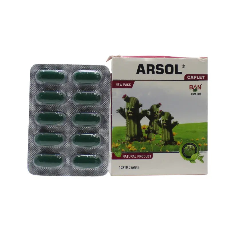ARSOL CAP is an Ayurvedic formulation designed to treat constipation and symptoms associated with piles, such as pain, bleeding, and itching. By combining astringent, antioxidant, and natural cooling herbs, Arsol provides relief from ano-rectal congestion, rectal inflammation, and constipation. This unique blend helps promote easier bowel movements, reduce discomfort, and accelerate the healing process for piles.