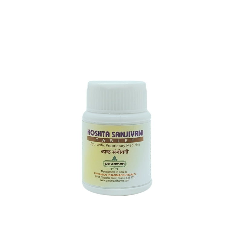 Koshta Sanjivani Tablet is an Ayurvedic formulation designed to address digestive health issues, particularly related to colitis, dysentery, and general abdominal discomfort. The combination of herbs and minerals in this tablet works to balance the digestive system and provide relief from symptoms like abdominal pain, bloating, and discomfort. It is especially beneficial for those experiencing chronic or acute forms of colitis, as well as other gastrointestinal distress.