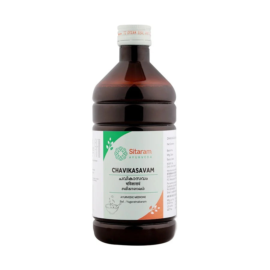 ‘Agni’ or the digestive fire is central to the Ayurvedic concept of health. A debilitated Agni gives rise to ‘Ajirna’, a condition characterized by incomplete digestion and metabolism. The individual suffers from loss of appetite, nausea and abdominal discomfort. Chavikasavam is an ‘asava’ formulation mentioned in the context of ‘Ajirna’ chikitsa (treatment), with appetite-inducing ingredients that stimulate the metabolic agency or ‘Agni’. Asavas are mildly alcoholic preparations. The sweet taste of Chavikasavam makes it palatable to kids and adults alike. The alcohol base makes it quick-acting and efficient.