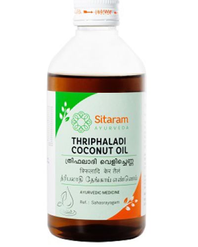 Triphaladi Thailam is an aromatic oil indicated for ?Moordhataila? application, or the process of applying oil to the head or ?Uttamanga?. Aggravated pitta manifests as inflammatory changes in the body. Regular application of the oil to the head balances the tridoshas in the system and pacifies aggravated ?Pitta? dosha in the body.
