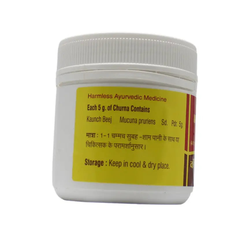 Vyas Kaunch Beej Churna is a potent Ayurvedic formulation made from pure Mucuna pruriens (Kaunch Beej), a renowned herb known for its rejuvenating, aphrodisiac, and neuroprotective properties. This herbal powder is a natural source of L-DOPA, a precursor to dopamine, which plays a vital role in brain function, mood balance, and muscle movement. Regular use helps in enhancing vitality, stamina, and nervous system health, making it a valuable supplement for overall well-being.