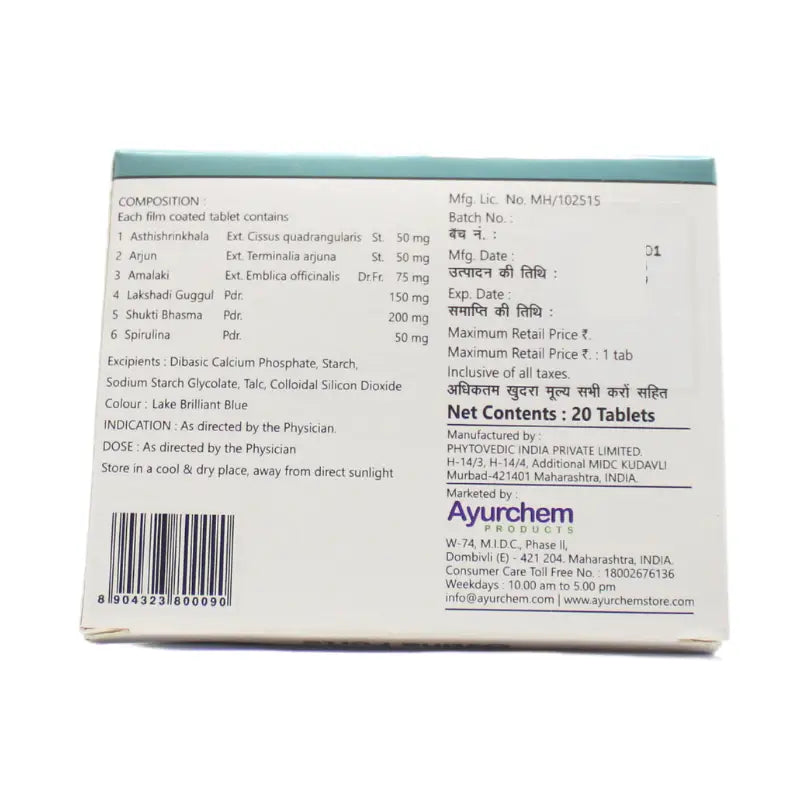 Ostina Forte is a natural calcium supplement enriched with essential trace elements and amino acids that play a crucial role in bone health, healing, and regeneration. This Ayurvedic formulation stimulates osteoblast activity, which helps fill bone pores with protein, allowing calcium and phosphate to bind and strengthen bones. It is highly effective in improving bone density, mass, and overall skeletal strength. Additionally, Ostina Forte exhibits analgesic and anti-inflammatory properties, making it beneficial for those suffering from osteoporosis, fractures, and bone-related disorders.