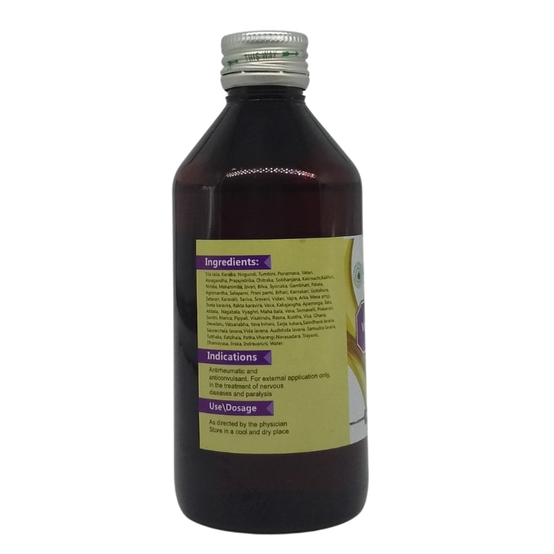 Maha Vishagarbha Taila is a powerful Ayurvedic oil designed to provide relief from neuromuscular pain and discomfort. This formulation is particularly effective in treating conditions like Vataroga, Grdhrasi, Dandapatanaka, Sarvangagrahana, and Karnanada. By alleviating pain, stiffness, and inflammation, Maha Vishagarbha Taila helps improve mobility and provides comfort to individuals suffering from various neuromuscular disorders. With its natural ingredients, this oil supports muscle and joint health, promoting long-lasting relief.