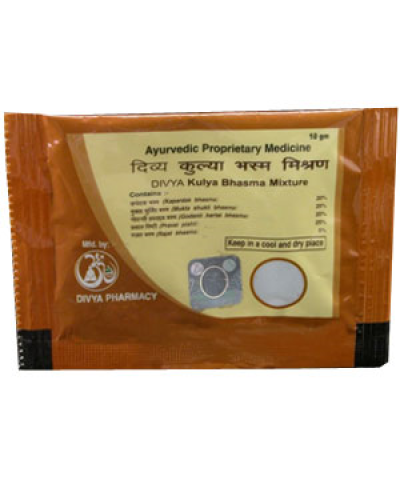 Patanjali Divya Kulya Bhasma Mishran contains Kapardak Bhasma, Praval Pishti, Mukta Shukti Bhsama, Godanti Hartal Bhasma, Rajat Bhasma, Vat Jata, and Jata Mansi as active ingredients.