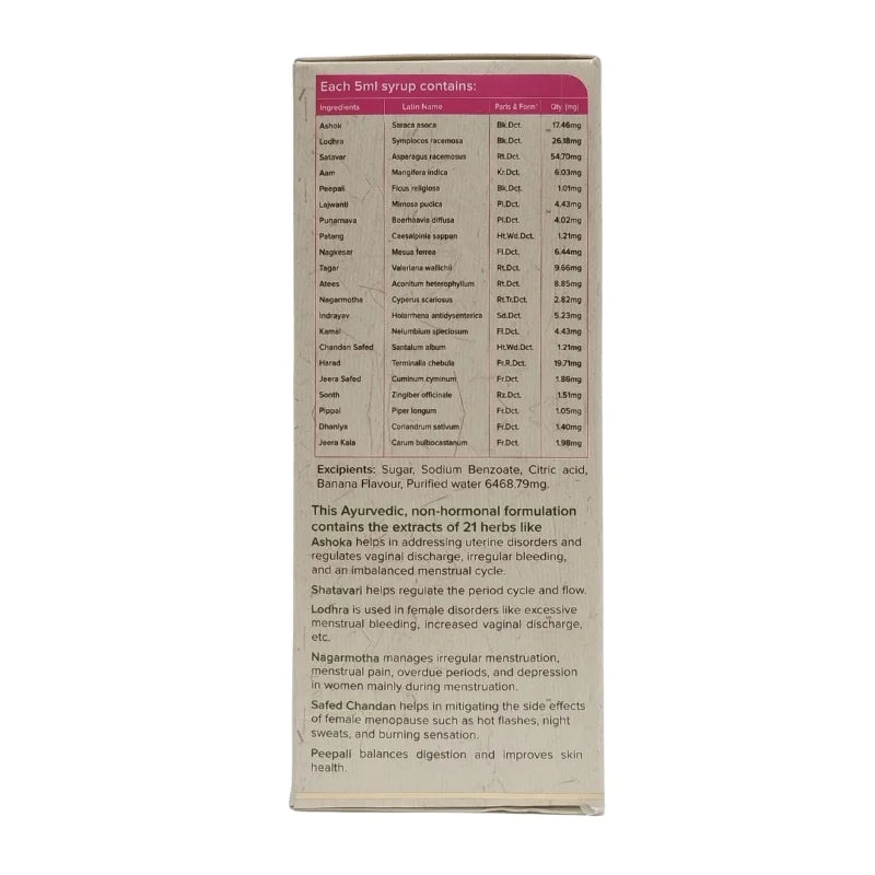 Maharishi Ayurveda Restone Syrup is an Ayurvedic formulation designed to support and regulate women's menstrual health. This potent Rasayana is formulated with a unique blend of herbs that work together to normalize menstrual cycles, alleviate menstrual cramps, and balance hormones naturally. The syrup is especially beneficial for women dealing with conditions such as PCOS (Polycystic Ovary Syndrome) and PCOD (Polycystic Ovarian Disease), providing relief from irregular periods and hormonal imbalances. In addition to regulating periods, it purifies the blood, enhances digestion, and helps to relieve stress and irritability during menstruation, promoting overall well-being. The herbs used in this syrup have been trusted for centuries in Ayurvedic medicine to maintain women's health, making it a safe and natural solution for maintaining a balanced menstrual cycle.