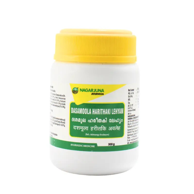 Nagarjuna Dashamoola Hareethaki Lehyam is a traditional Ayurvedic formulation known for its powerful rejuvenating and healing properties. It is widely used in the management of chronic inflammatory conditions, fever, anemia, and liver ailments. This lehyam is rich in nutrients, helping in weight gain, improving overall vitality, and promoting better digestion. It also clears the bowels, strengthens the immune system, and balances the body's doshas.