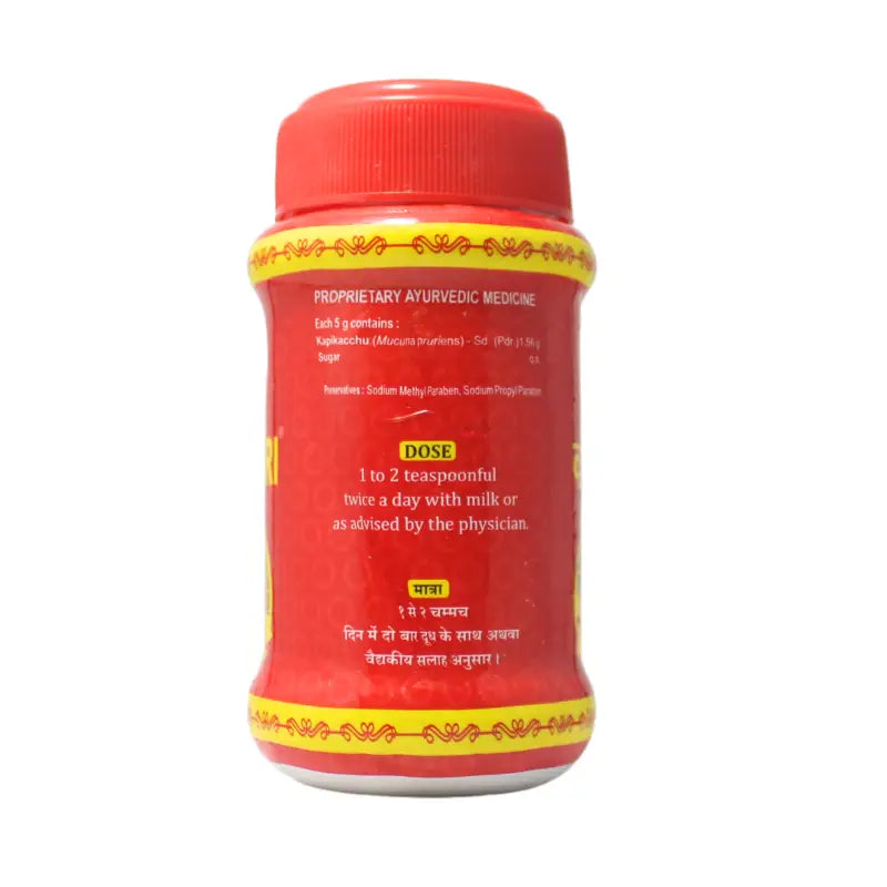 Vanari Kalpa is a proprietary Ayurvedic formulation designed to enhance male reproductive health, restore virility, and improve overall vitality. The primary ingredient, Kapikacchu (Mucuna pruriens), is well-known for its aphrodisiac properties and has been traditionally used to boost libido, improve sperm health, and support fertility. Rich in L-dopa, a precursor to dopamine, it also helps in mood regulation, reducing stress and anxiety while promoting overall well-being.