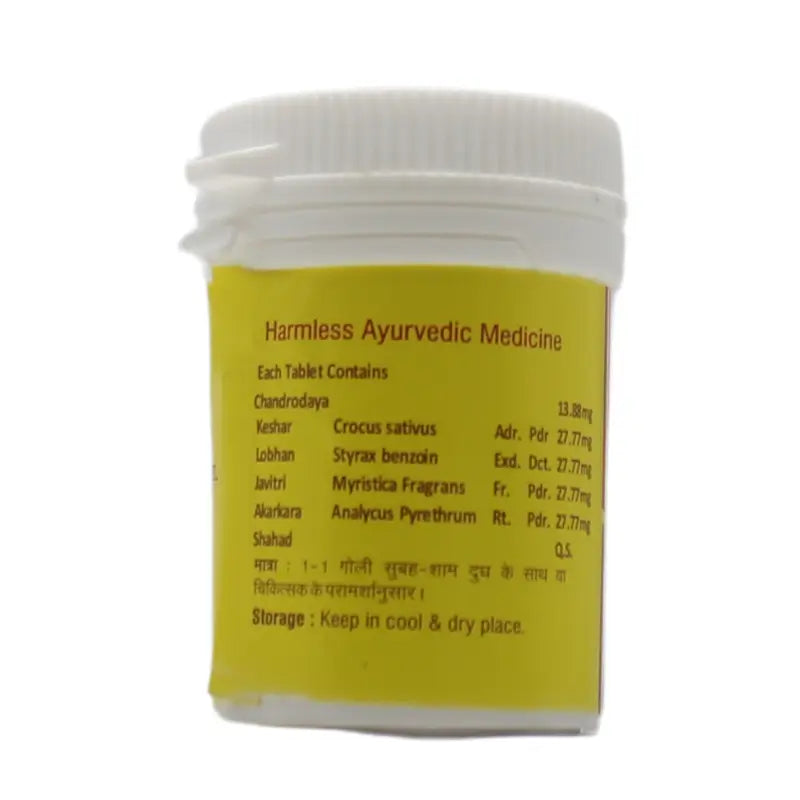 Vyas Virya Sthambhan Vati is a unique Ayurvedic tablet designed to address male sexual health concerns, particularly premature ejaculation and impotence. This potent blend of natural ingredients provides aphrodisiac action, helping improve stamina, vigor, and fertility. It works by strengthening the genital system, supporting longer and harder erections, and controlling pre-ejaculation. It is also beneficial for issues like spermatorrhoea, sexual debility, and nocturnal emissions. Regular use of this formulation can significantly enhance sexual performance and overall vitality.