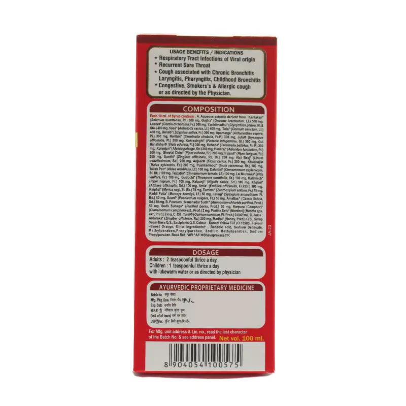 Kantakari (Solanum xanthocarpum): Assists in relieving bronchospasm and improving ventilation in airways.