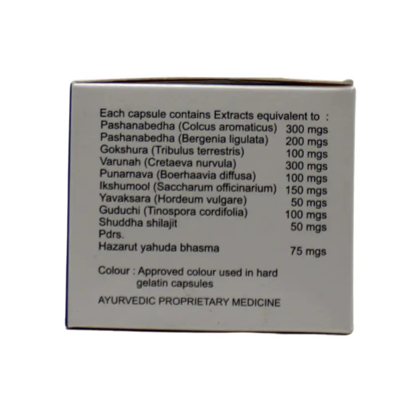 Pashanbheda (Bergenia ligulata): Helps in disintegrating renal stones, promoting easier passage of stones.