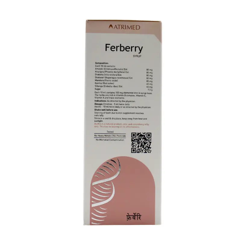 Ferberry Syrup is an Ayurvedic iron supplement designed to combat anemia, fatigue, and general weakness. It improves hemoglobin levels, enhances energy, and supports overall vitality.