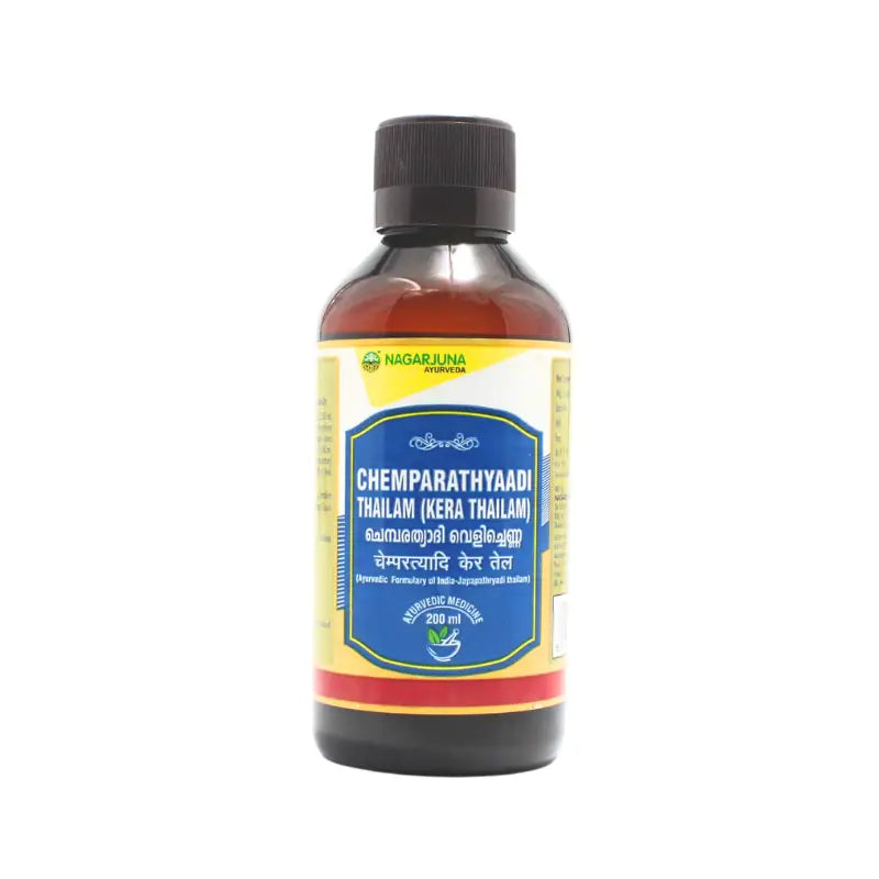 Chemparuthyadi Keratailam is a potent herbal oil formulation designed to treat a variety of skin conditions, including eczema, scabies, and pruritis. This oil is prepared with coconut oil as the base, providing deep nourishment and soothing effects. The unique combination of herbal ingredients works to balance the skin's natural oils, reduce irritation, and promote healing. Ideal for external application, Chemparuthyadi Keratailam is traditionally used in Ayurvedic treatments to restore skin health and alleviate discomfort caused by various skin diseases.